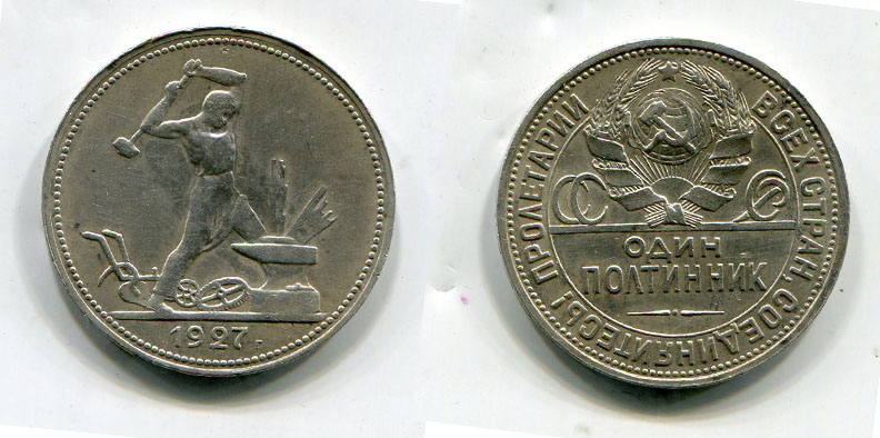 Монета серебряная СССР один полтинник (50 копеек) 1927 года