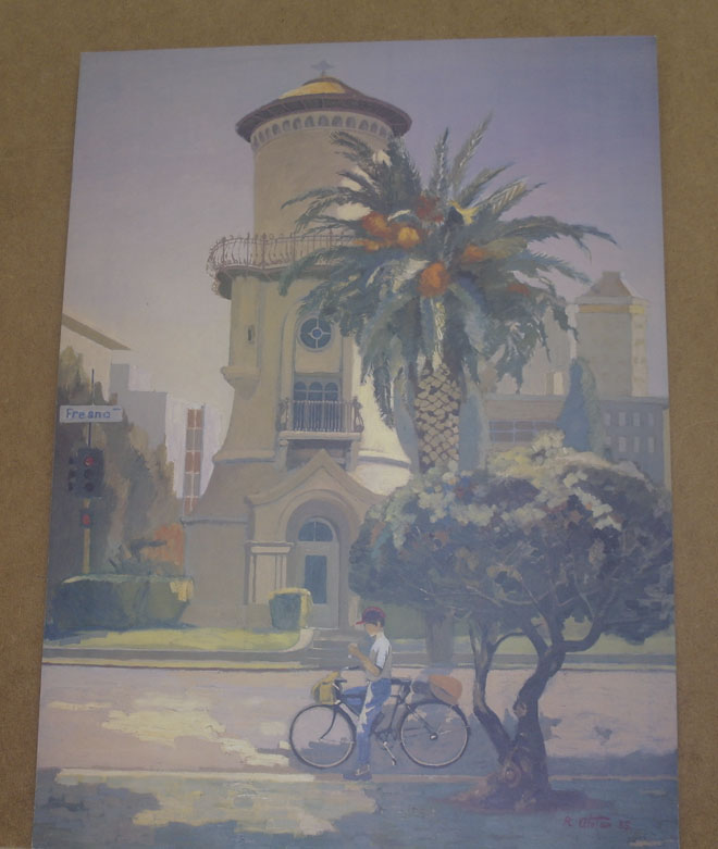 Картина акварелью "Велосипедист". Художник R. Atoian 1995