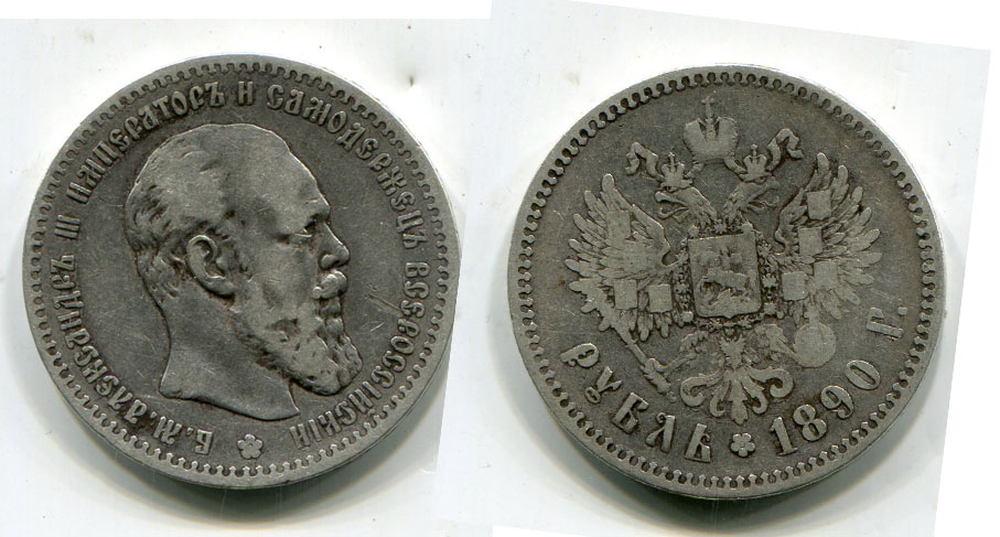 Монета серебро 1 рубль 1890 Император Всероссийский Александр III