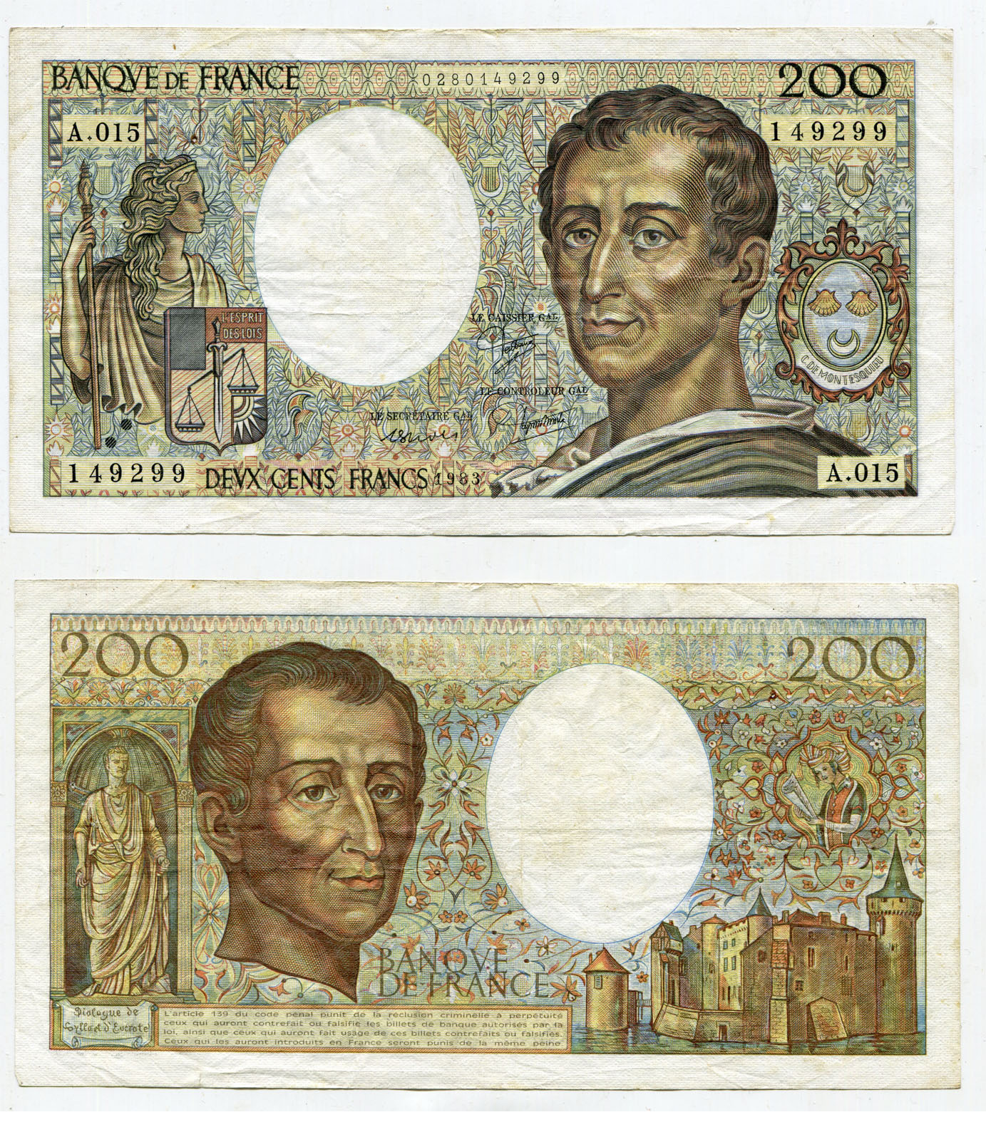 Денежный знак 200 франков 1939 год Франция