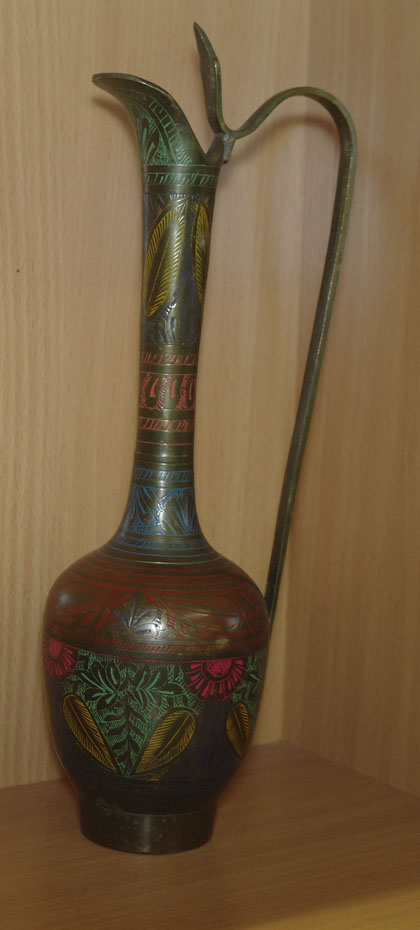 Ваза с ручкой латунь Индия ручная работа цветная эмаль