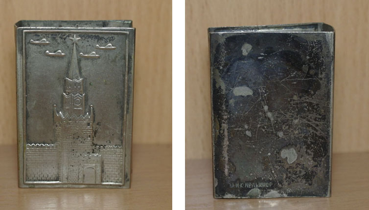 Мельхиоровый футляр для спичек "Кремль" СССР